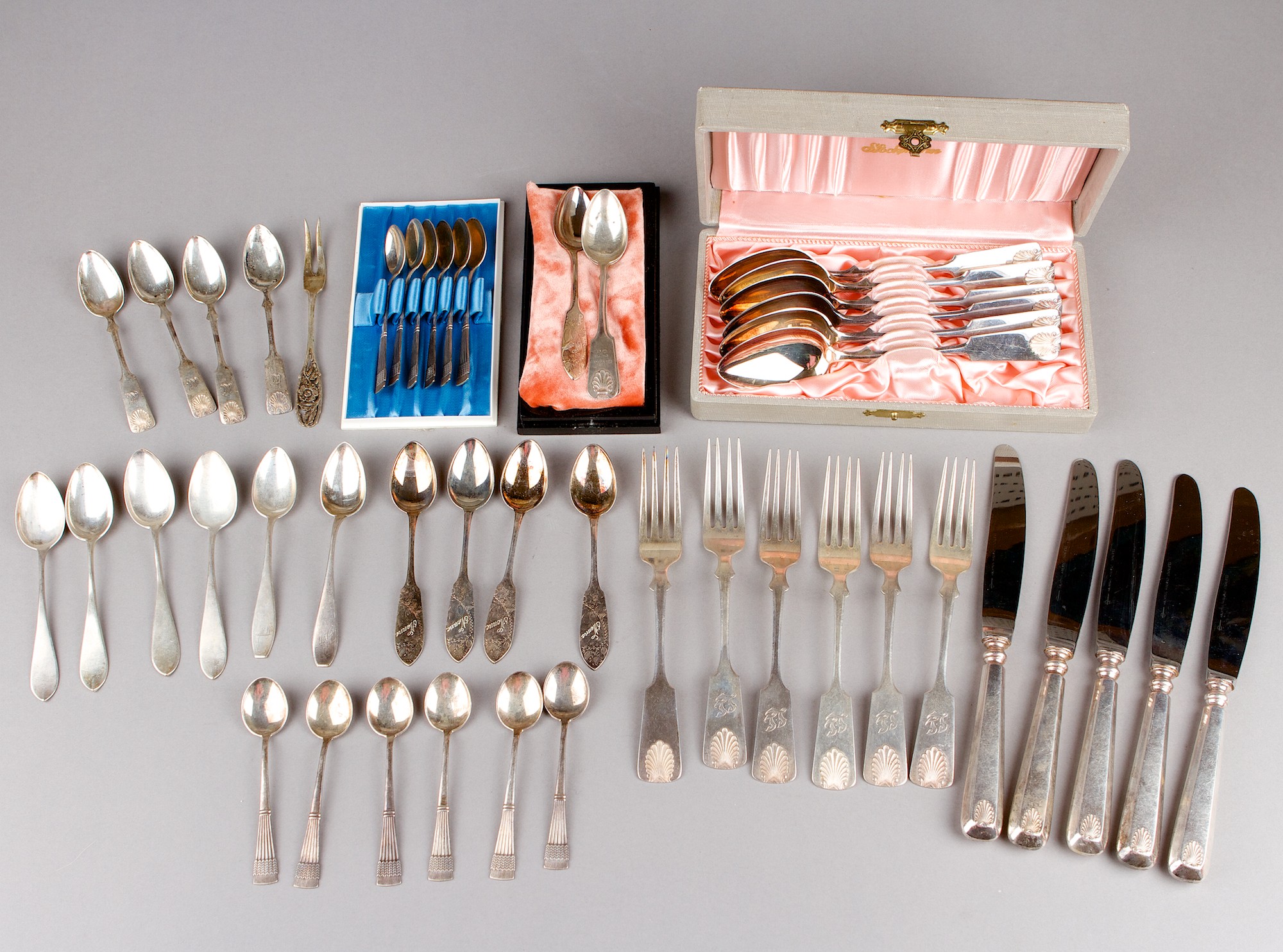 Spoons, 46 pcs, forks, 6 pcs and knifes, 5 pcs