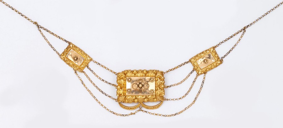 slavery necklace engraved yellow gold. XIXth century. P. 7g.