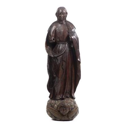 SOLID WOOD SCULPTURE REPRESENTING THE VIRGIN STANDING BAKERS