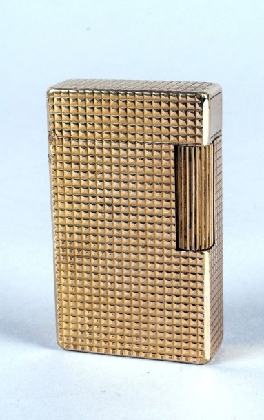 BRIQUET en plaqué or guilloché. 5,7 x 3,3 cm