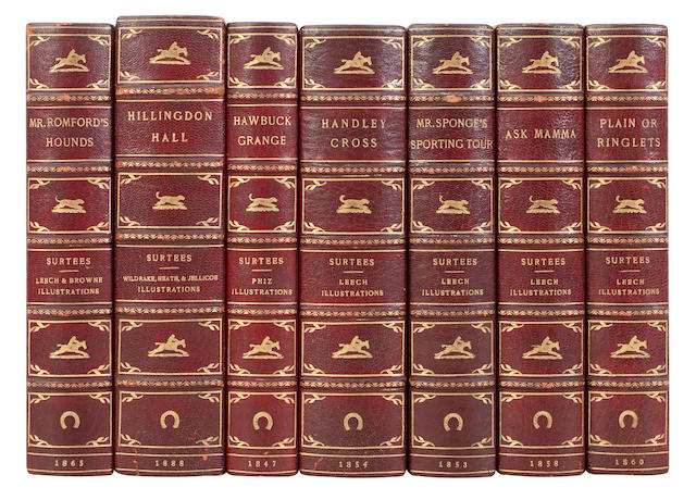 Hawbuck Grange; or the Sporting Adventures of Thomas Scott, 8 plates after Phiz, rebacked preserving original, Longman, Brown, Green, 1847; Mr Sponge's Sporting Tour, 1853; Handley Cross or Mr. Jorricks's Hunt, 1854; "Ask Mamma" or, The Richest Commo