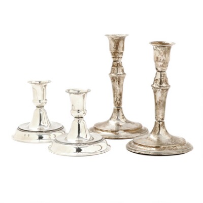 To pairs of silver candlesticks