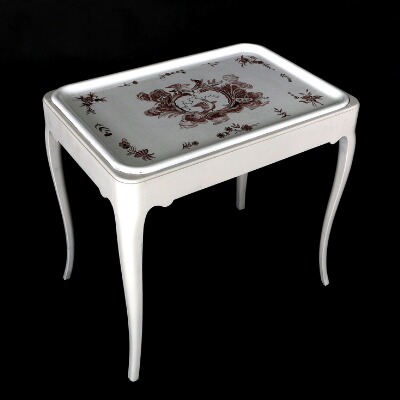 Swedish faience table top decorated in manganese with scattered bouquets and birds in rocaille.