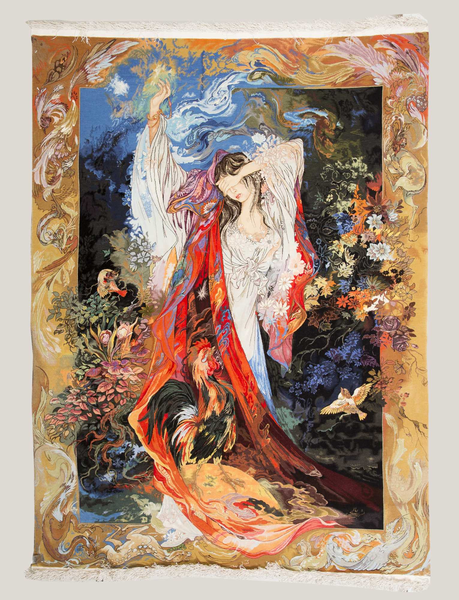 Tabriz Silk and Wool Pictorial Hanging Rug