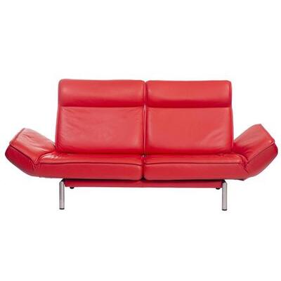 Thomas Althaus, Sède sofa, model ds-450, 2 seats in red leather and rubbed steel base