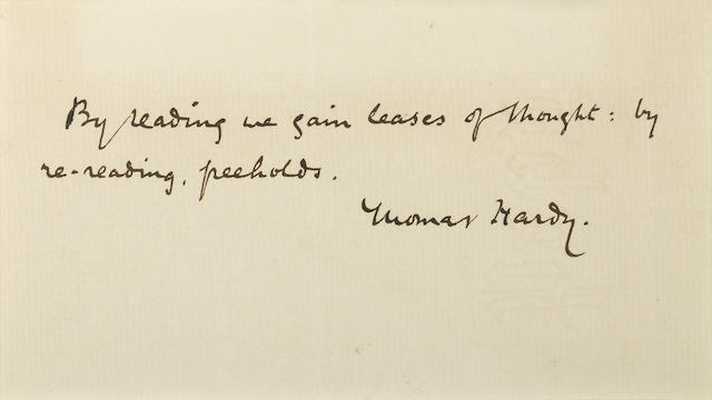Autograph Quotation Signed ("Thomas Hardy"), 1 p, 12mo, n.p., n.d. matted with portrait and framed.