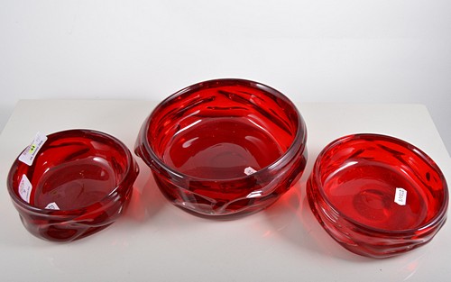Three graduating Whitefriars ruby glass bowls, by Wilson and Dyer