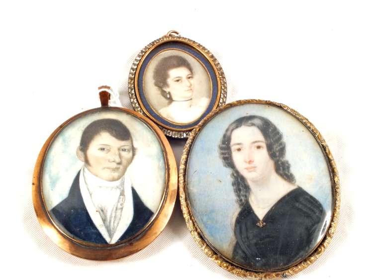 Three oval 19th Century portrait miniatures in gilt meal frames