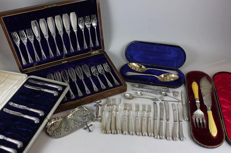 fish servers and berry spoons, another part set and some other silver plated flatware