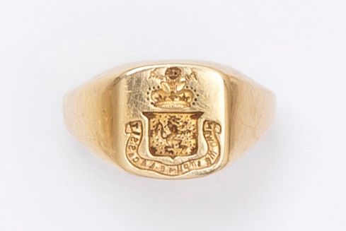 Signet 14K yellow gold engraved coat of arms. Tiffany signed. Ring size: 46. P. 6.7 g