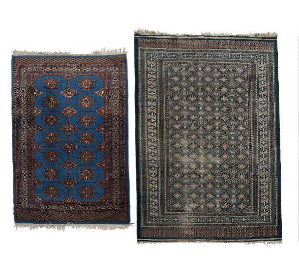 To sign. pakistanske tæpper, klassisk Bochara design på blå bund