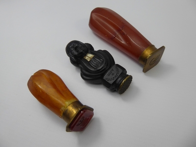 Two Antique Amber Wax Seal Stamps