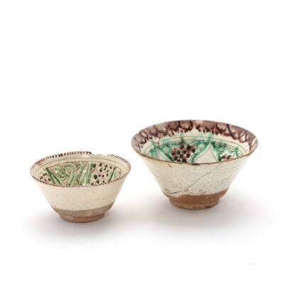 Two bowls of fired clay with incised decoration. Afghanistan of Bamiyan - type. 12th-13th century. Diam. 13.5 and 17.5 cm. (2)