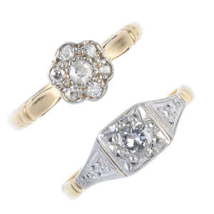 Two early 20th century 18ct gold diamond rings.