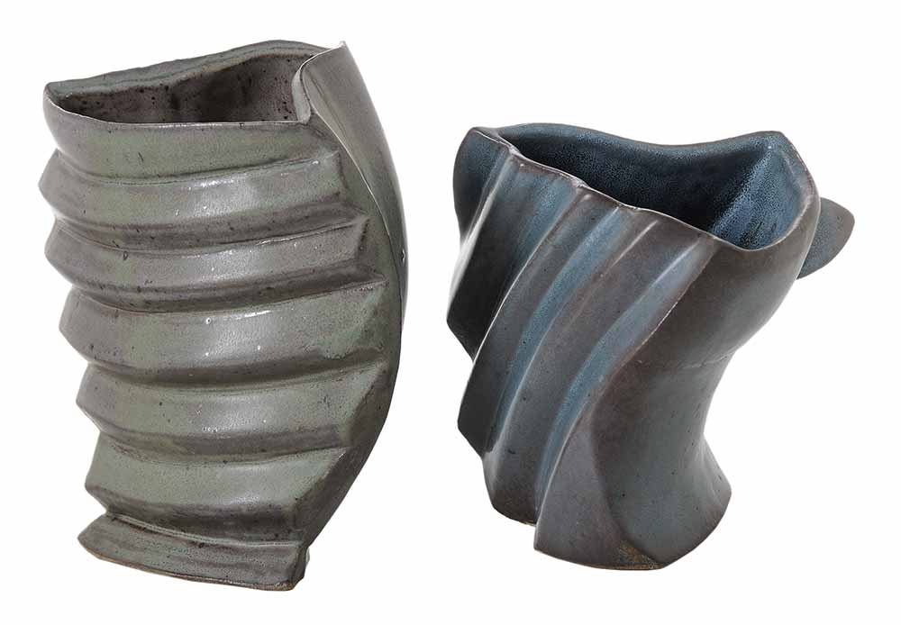 Vessels American, early 21st century, with blue and green glazes, both signed in script "Wurtz" on bottom,