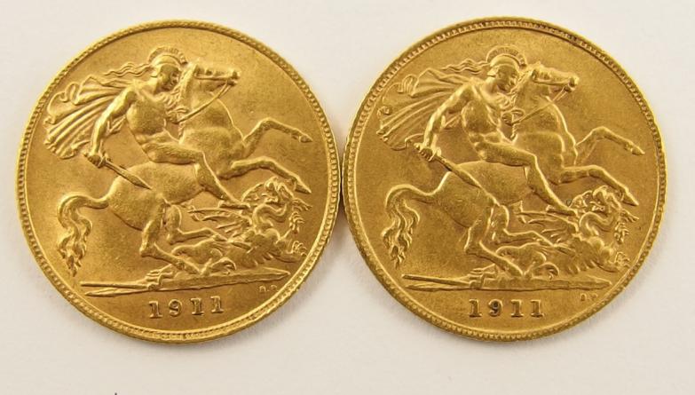 Two gold half sovereigns dated 1911
