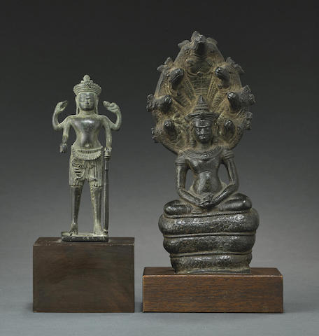 With Vishnu standing holding characteristic implements; and Nagaraja Buddha; each with fitted wood display stand