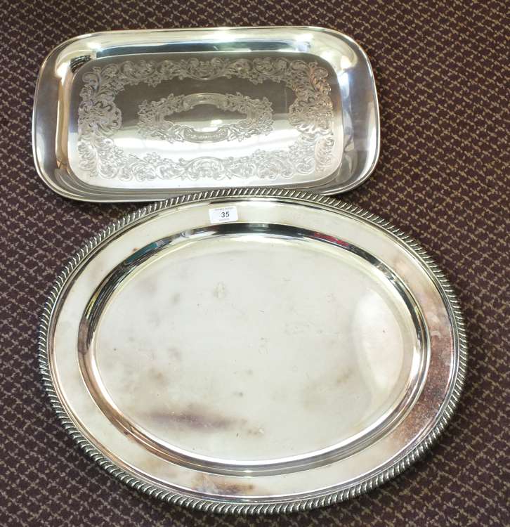 Two large oval and rectangular Silver plated trays