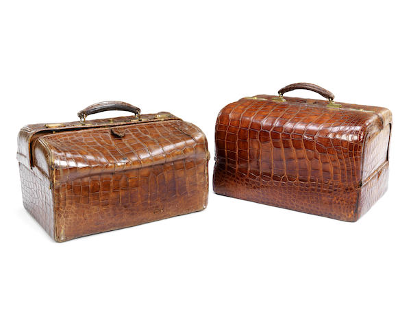 Two late 19th century/early 20th century crocodile Gladstone bags, late 19th century/early 20th century