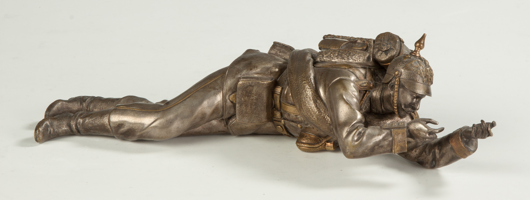 Unusual Cast Brass & Patinaed Inkwell of a German Soldier