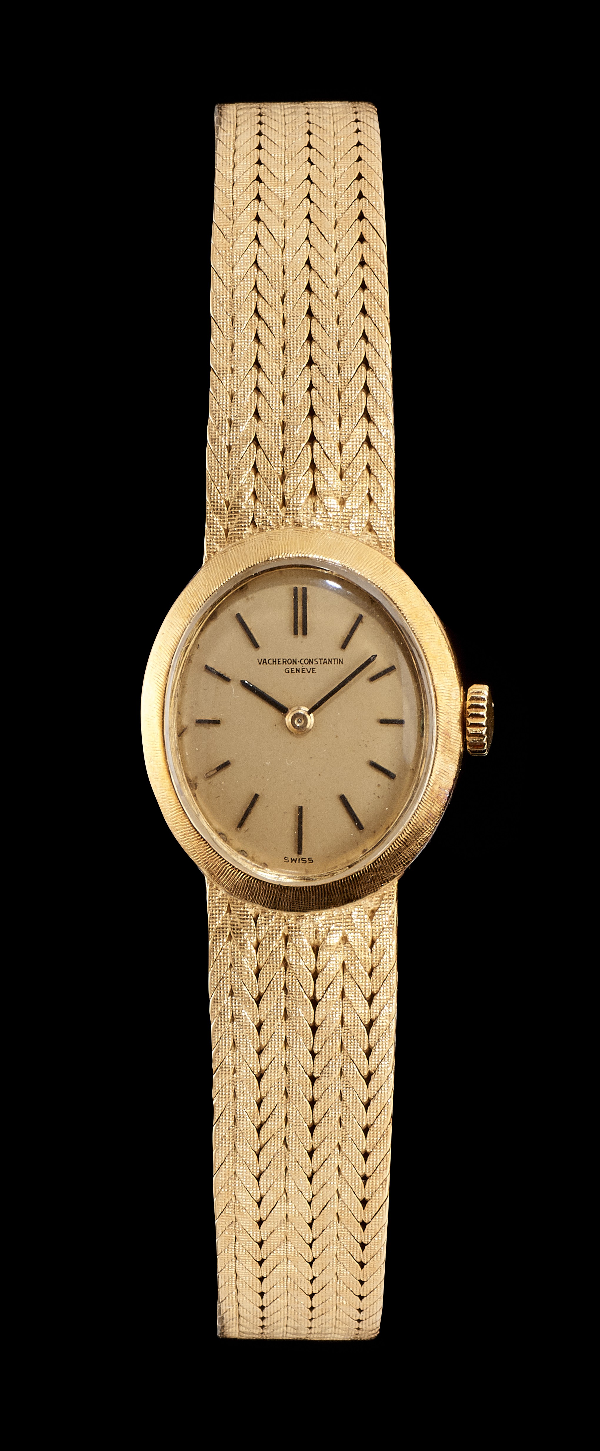Gold dial, black stick and pointer indexes, 750 gold, 21x18 mm, gross weight 33 g
