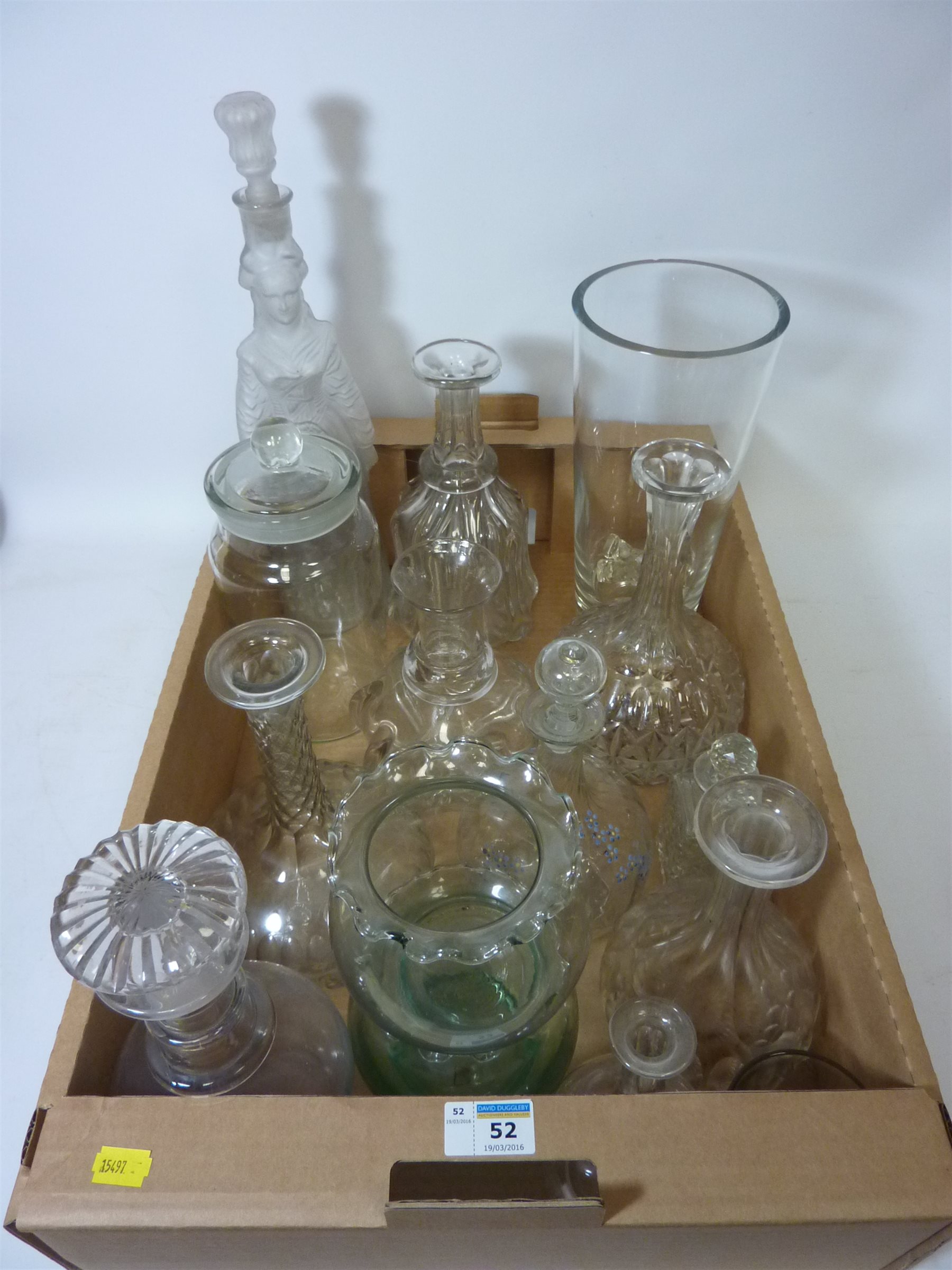 Victorian decanters and other glassware in one box