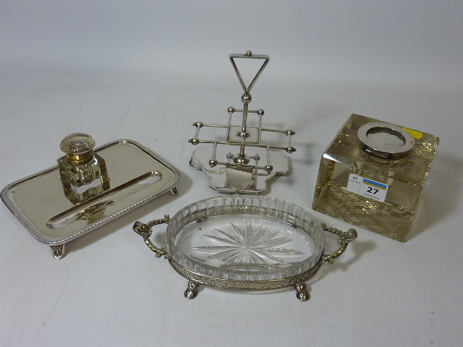 Victorian glass ink well with hallmarked silver collar (Birmingham 1897)