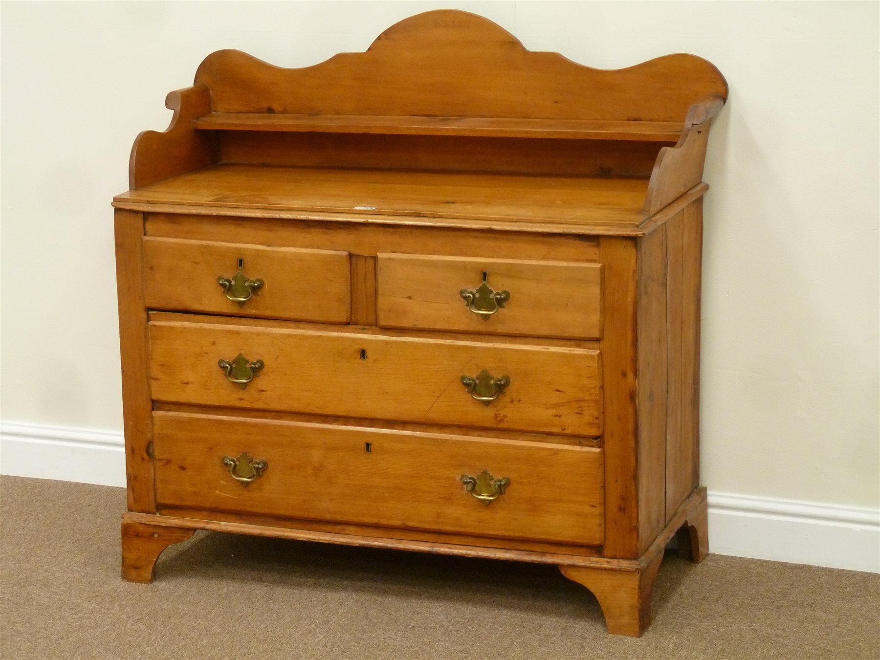 Victorian polished pine chest fitted with two short and two long drawers, raised shaped back