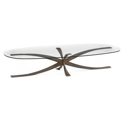 WROUGHT IRON COFFEE TABLE WITH 8 BRANCHES AND OVAL GLASS TOP