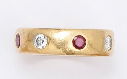 Yellow Gold Alliance decorated with rubies and brilliant-cut diamonds. P. 6.7 g