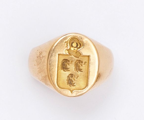 Yellow gold signet ring engraved with coats of arms. Ring size: 57. P. 14.5 g
