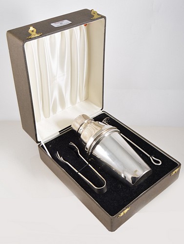 Yeoman plate cocktail shaker, height 21cm, with accessories, (boxed).
