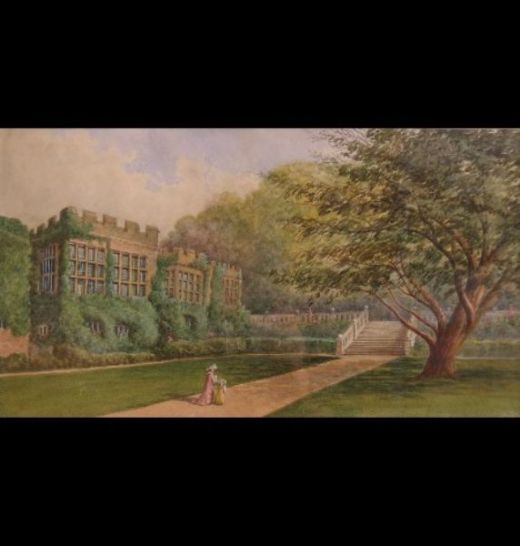 Haddon Hall, Derbyshire, figures on a path