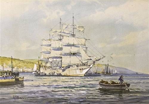 A three masted clipper off the coast