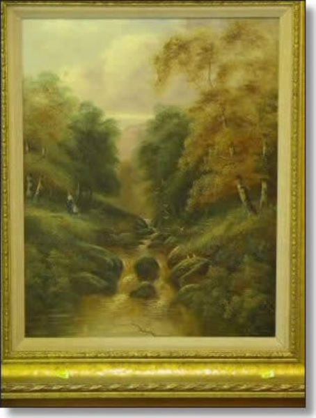 figures by woodland stream