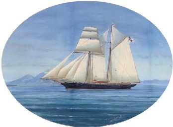| A topsail schooner of the Royal Yacht Squadron in the Mediterranean off Naples | |