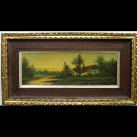 SUNSET LANDSCAPES WITH COTTAGES AND WATERFALL