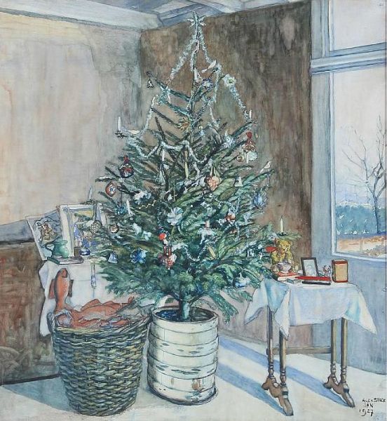 Interior with a decorated Christmas tree.