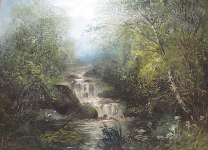 A wooded Landscape with waterfall