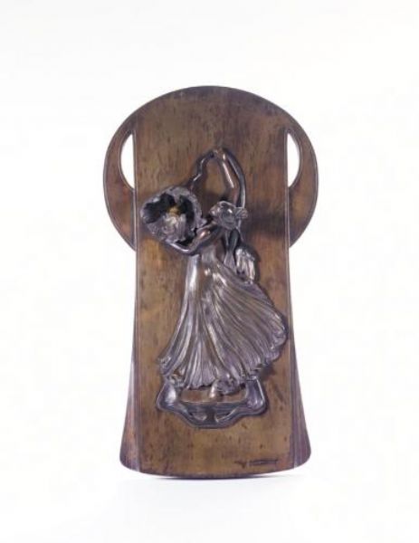 A BRONZE WALL LIGHT OF AN ART NOUVEAU MAIDEN