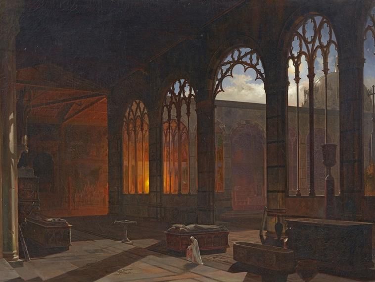 Night Scene with a Monk in a Gothic Cloister