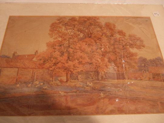 Farmyard scene showing duck pond with ducks