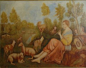 Shepherdess playing a flute
