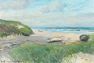 Costal scene with boats pulled ashore. Signed B.F. Kandestederne. Oil on canvas. 68×98 cm. | |