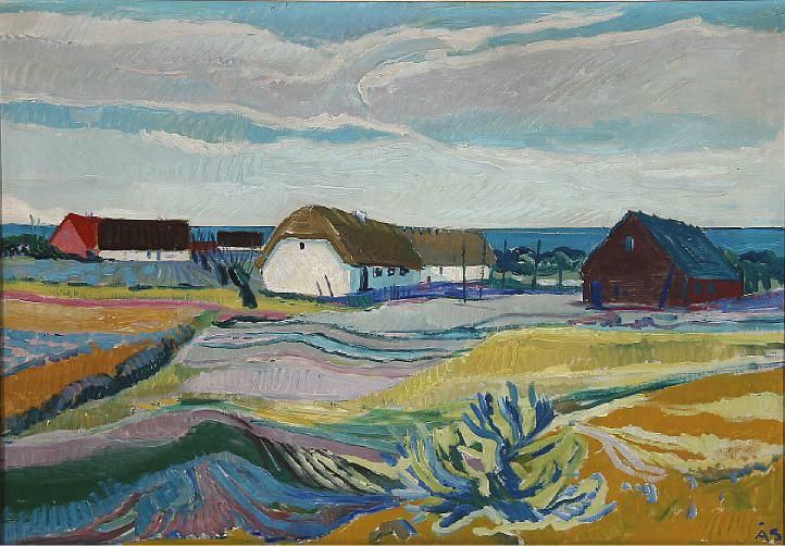 Scene from Limfjorden with farm houses.