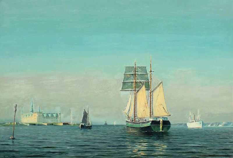 Several sailing ships in the background Kronborg Castle