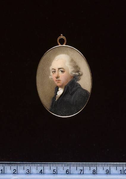 | A Gentleman, probably of the Stone family, wearing black coat, matching waistcoat, frilled white cravat and powdered wig with si | |