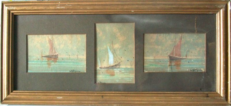 a series of three sketches of sailing boats