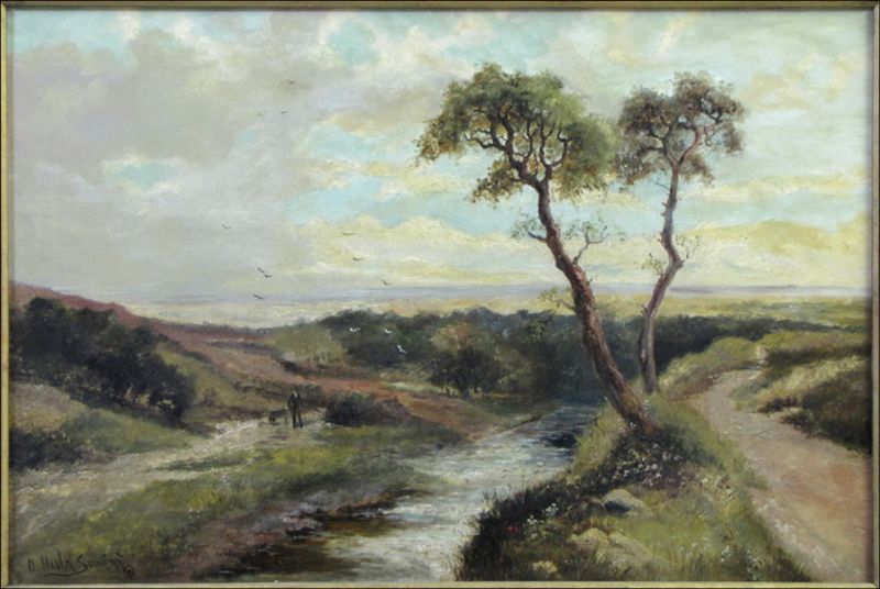 RIVER LANDSCAPE WITH STROLLING FIGURE