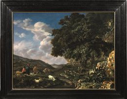 PAESAGGIO ITALIANO CON VIAGGIATORI E PASTORI